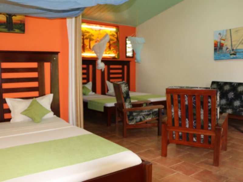 L’hôtel propose des bungalows standards et familiaux, certains climatisés, conçus pour offrir confort et sérénité. Chaque bungalow est équipé de lits confortables, d’une salle de bain privative et d’une terrasse, permettant de profiter d’une vue agréable sur le jardin ou la piscine.
